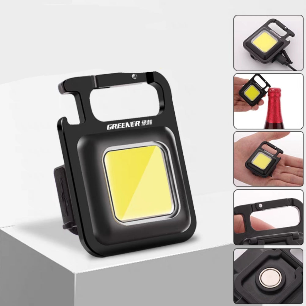 Multi-Function COB Rechargeable Keychain Light Mini Flashlight Bright Portable Pocket Work Light with Bottle Opener