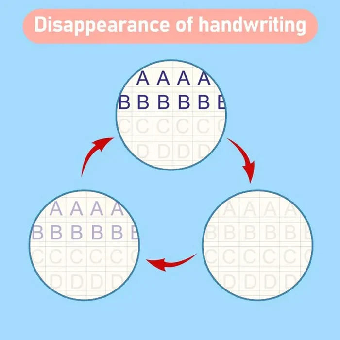 The ink will automatically disappear and the Copybook can be reused with the use of our Magic Pen.